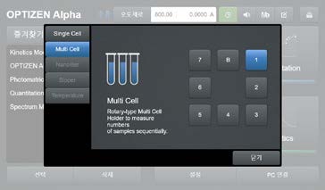 5.不用進入模式就可以選擇比色皿類型來進行測量及監控, 快捷菜單上的比色皿類型圖標會隨著比色皿類型狀態或是位置發生變化, 可方便地確認比色皿的目前狀態